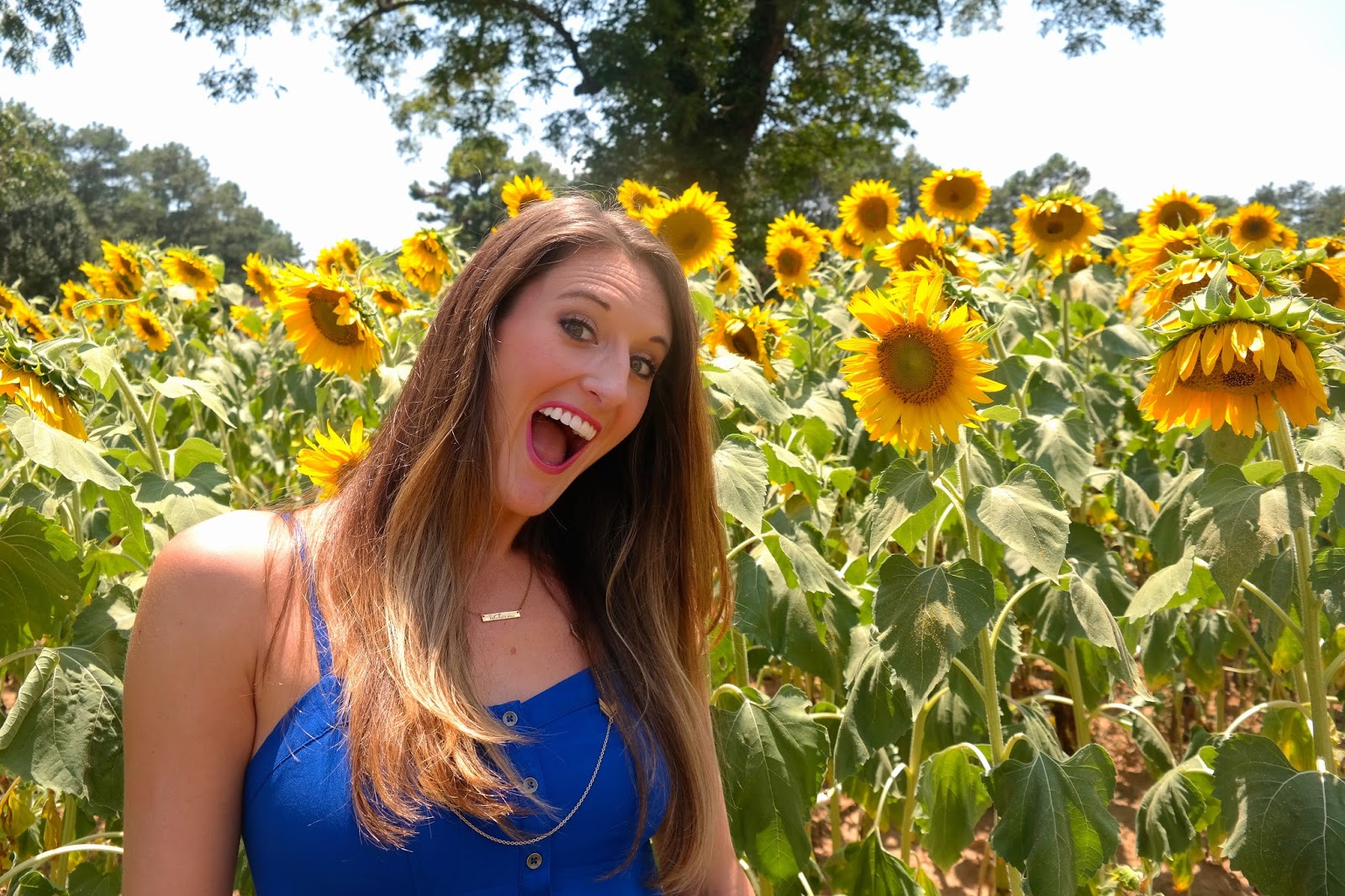So this year when we went I knew it was going to be perfect. Because I wanted a sunflower field photo and a live one at that! We grabbed the rest of the VGB team, checked the website and made sure these beauties would be alive and since it was scorching heat outside we packed a cooler of the yummiest Pop Stars popsicles ever to stay cool. Oh yeah, I should mention they are a local Atlanta pop brand called Pop Stars! #shoplocal!