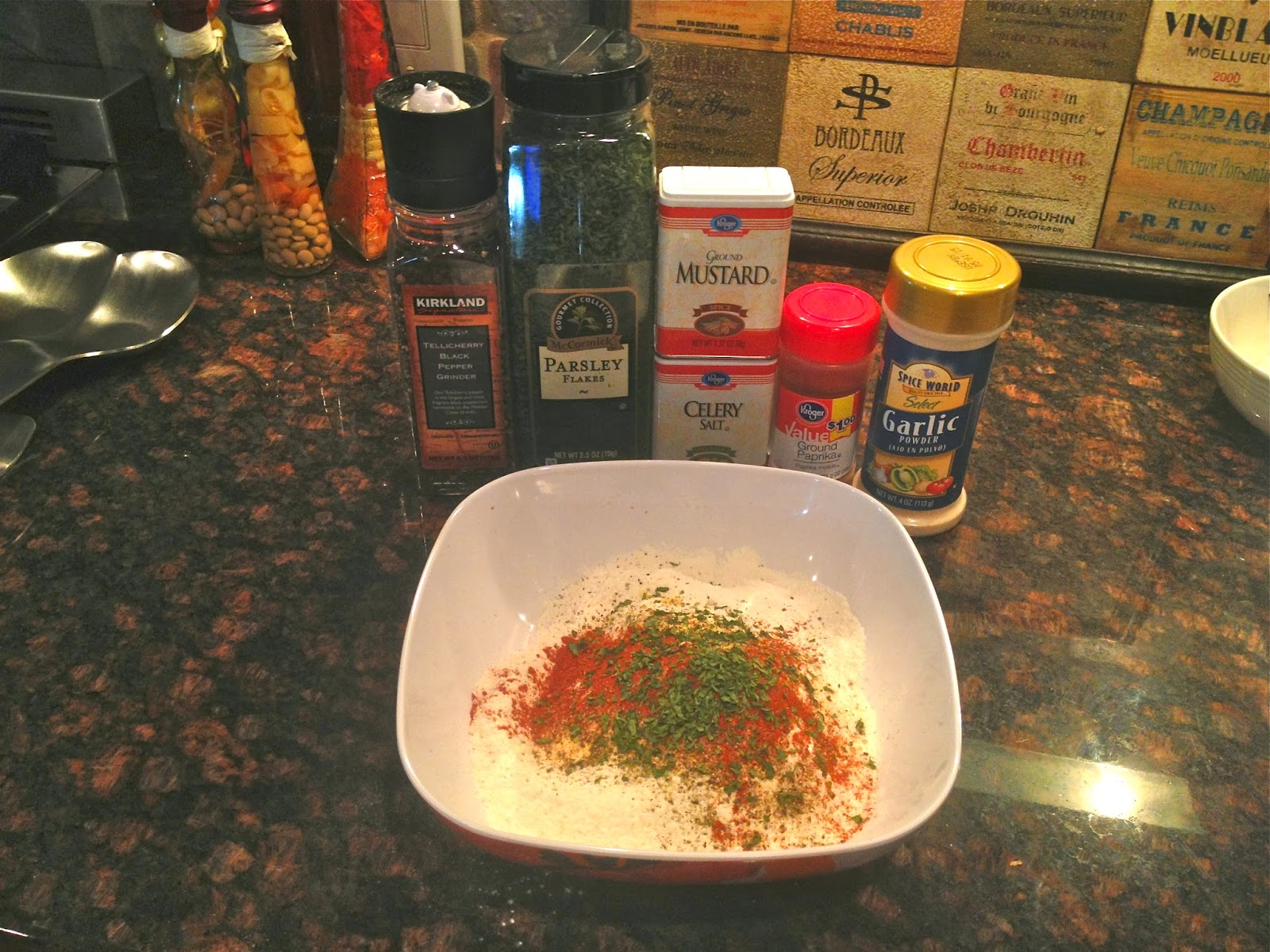 Seasoning to taste (cayenne pepper, garlic powder, onion powder, paprika, salt and pepper, dried parsley, garlic salt, celery seed)